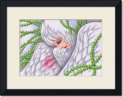 メルヘン・ファンタジーのイラスト素材 - 鳥・白鳥・女性・鳥人・植物・蔓・蔦・棘・罠